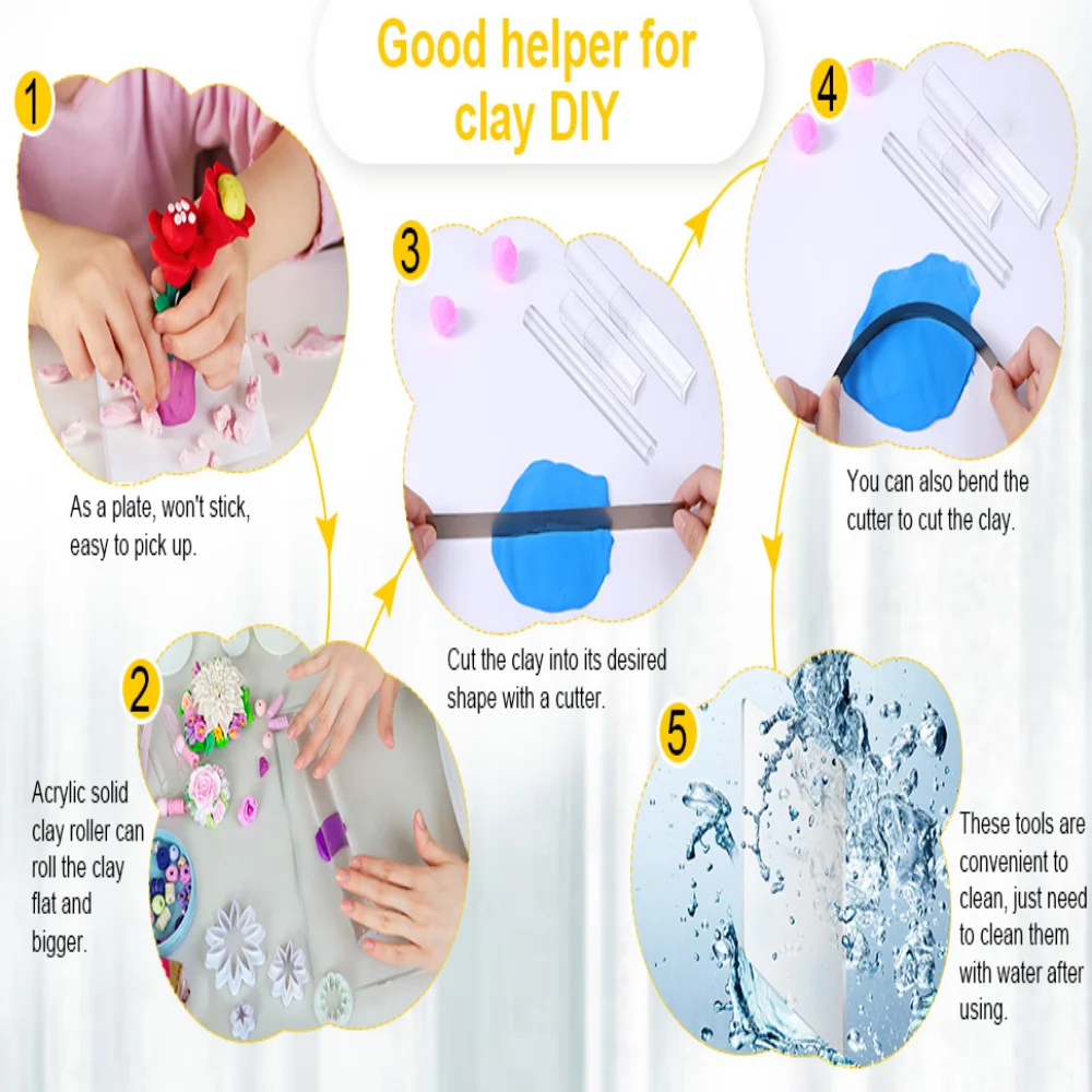 This 4-piece acrylic clay roller and cutter set is perfect for shaping, modeling, and sculpting polymer clay, ceramics, and other craft materials. Featuring durable carbon steel blades and rollers, the set allows precise cutting, rolling, and shaping for DIY projects, miniature crafts, and artistic creations. Lightweight and easy to handle, the tools provide excellent control for intricate designs and smooth results. Ideal for hobbyists, artists, and craft enthusiasts, this versatile set enhances creativity and accuracy in clay modeling, ceramic work, and sculpting projects.