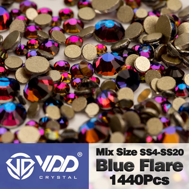 VDD clear crystal flatback rhinestones in SS4–SS20 mixed sizes with gold backing. Non-hotfix design for easy glue application. Ideal for 3D nail art, DIY crafts, and decorative projects.
