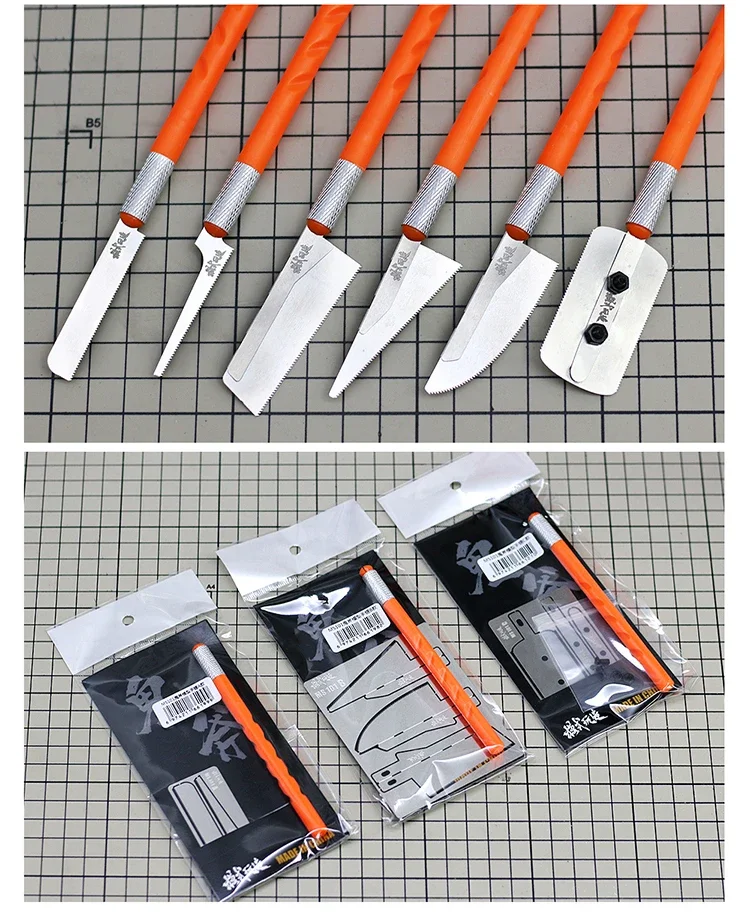 This mini hand saw is designed for detailed model and craft work. It is ideal for hobbyists who need clean and accurate cuts. The compact size allows excellent control in tight spaces. Three different saw blade styles are included for versatile cutting tasks. Each blade is suitable for fine materials used in modeling projects. The saw works well on plastic, wood, and thin soft metals. Its lightweight design reduces hand fatigue during long sessions. The handle provides a comfortable and secure grip. This tool is useful for etching, trimming, and shaping small parts. It helps achieve professional-looking results on scale models. The saw is easy to use for both beginners and experienced crafters. It is a practical addition to any model building or DIY toolkit.